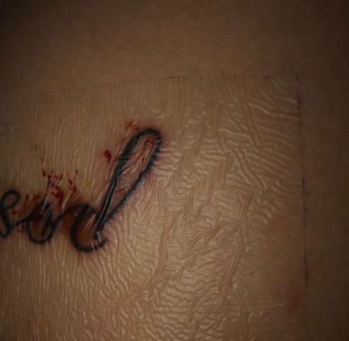 Eine Tätowierung gleicht einer Schürfwunde. Obwohl ich ein weites T-shirt anhatte das die Tätowierung bedeckte.
